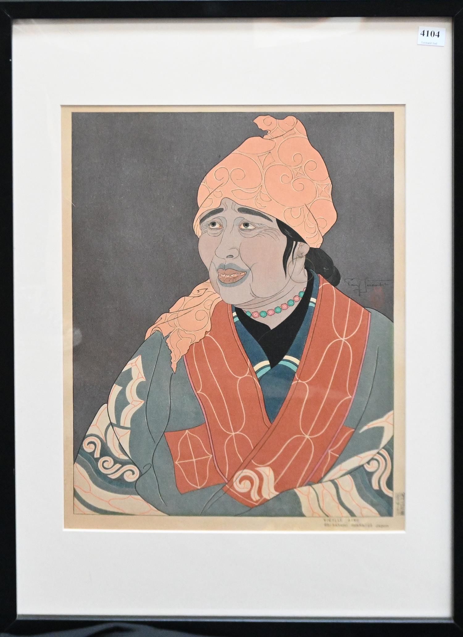 PAUL JACOULET, VIEILLE AINO CHIKABUMI HOKKAIDO JAPAN, COLOUR WOODBLOCK, 41 X 32CM (SHEET), FRAME SIZE: 62 X 45CM