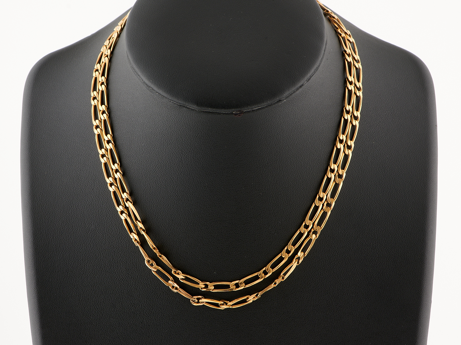 A FIGARO LINK CHAIN IN 9CT GOLD, 800MM, 22.20GMS