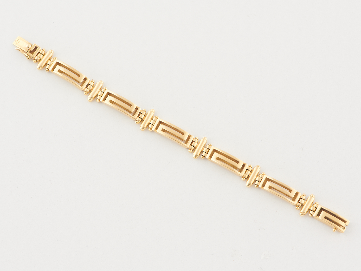 A GREEK KEY LINK BRACELET IN 18CT GOLD, LENGTH 170MM, APPROXIMATE WEIGHT 31.50 GMS