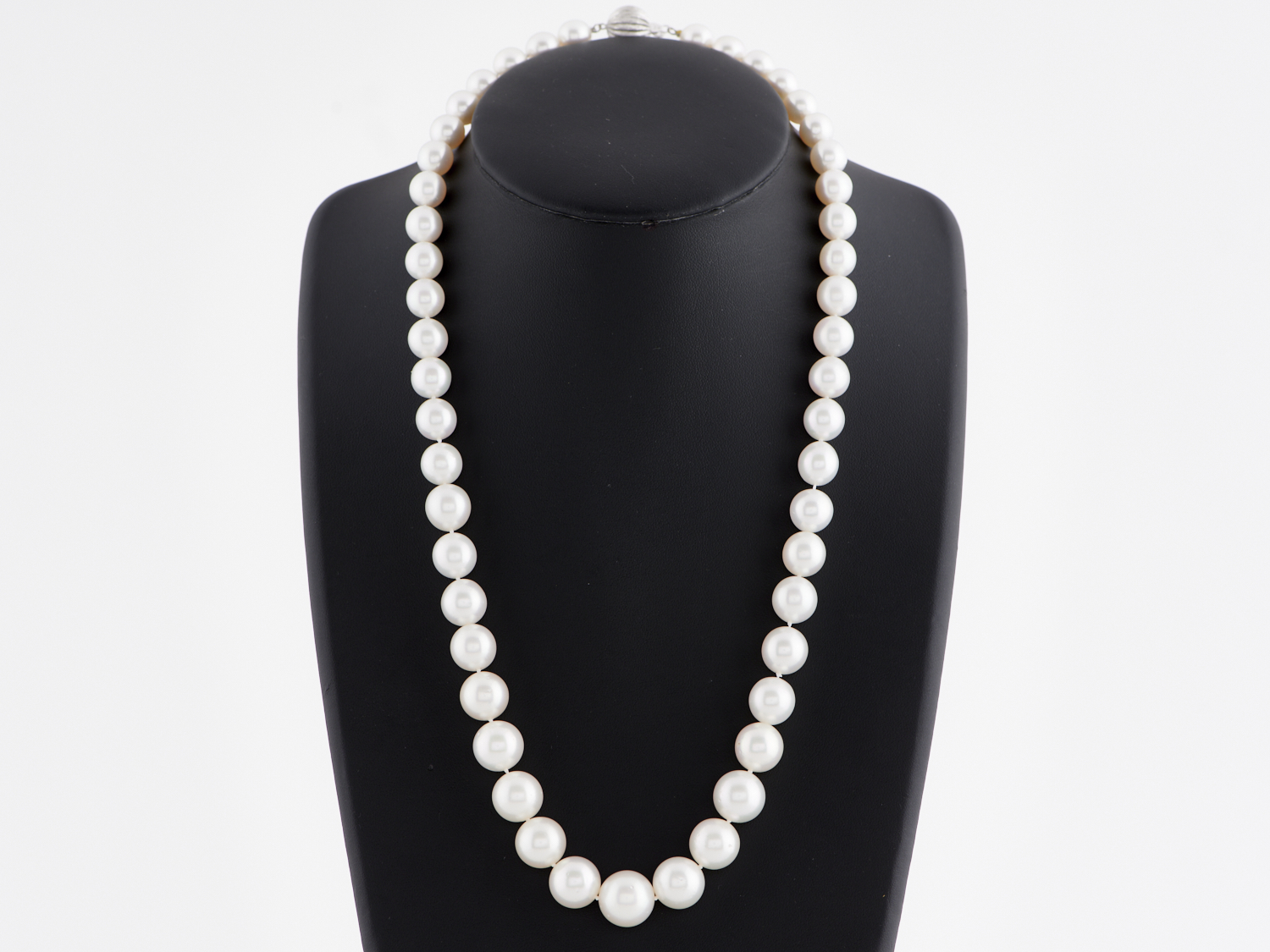 A STRAND OF SOUTH SEA PEARLS TO AN 18CT WHITE GOLD CLASP, THE PEARLS MEASURING 9.07MM - 13.96MM, TOTAL LENGTH 590MM