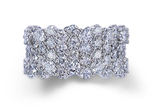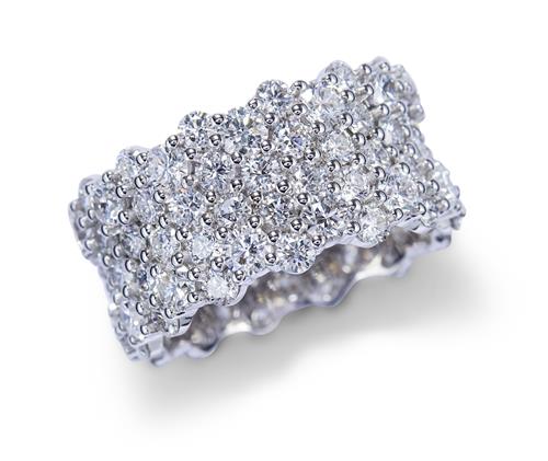 The 11mm wide fluted band is pavé-set with brilliant-cut diamonds, the diamonds together weighing approximately 8.06 carats, mounted in 18ct white gold, size P.