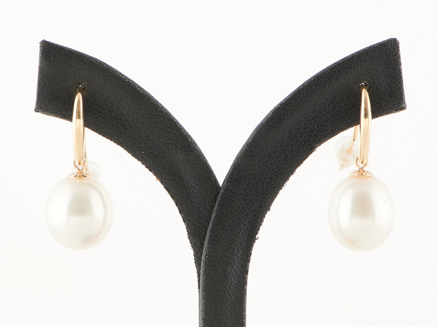 A PAIR OF AUSTRALIAN SOUTH SEA PEARL EARRINGS TO SHEPHERDS HOOK FITTINGS IN 9CT GOLD, THE PEARLS MEASURING 10.9MM