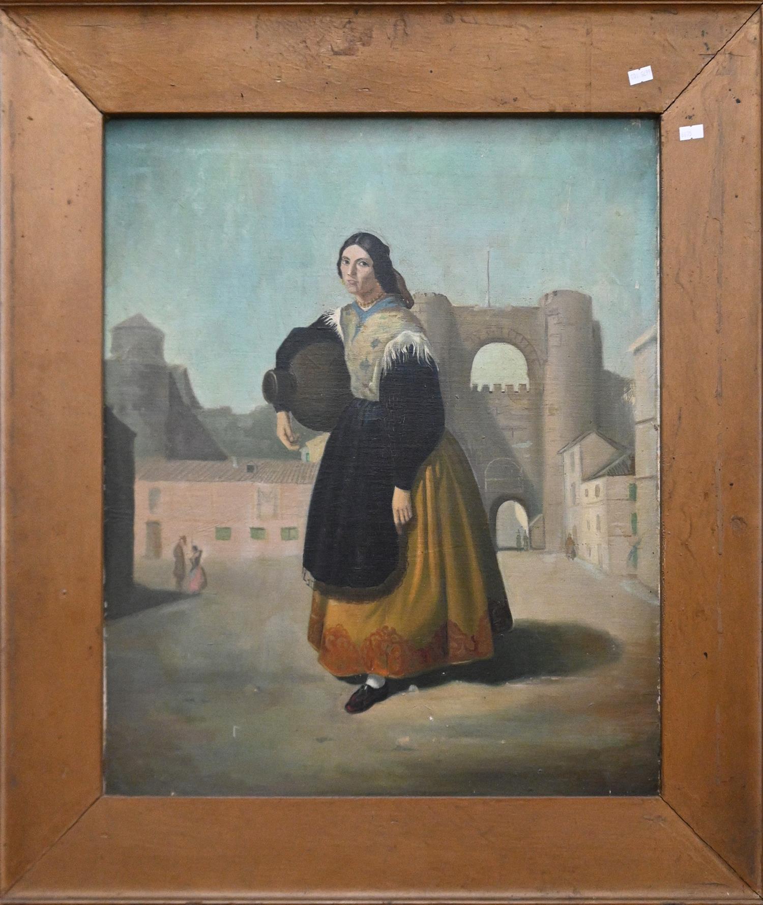Surface dust and dirt, abraisions and foreign matter across canvas. Wear, cracks and mark to the frame.