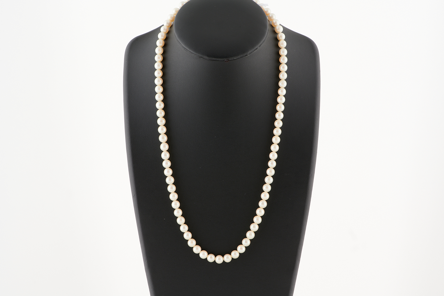 A STRAND OF CULTURED PEARLS TO A OVAL STERLING SILVER CLASP, THE PEARL DIAMETER 7MM, TOTAL LENGTH 550MM