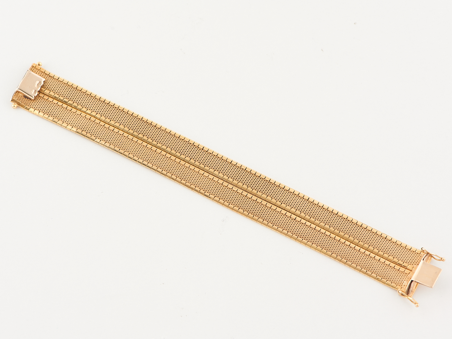 A TEXTURED DOUBLE ROW BRACELET IN 18CT GOLD, TOTAL LENGTH 190MM, TOTAL WEIGHT 58.44GMS