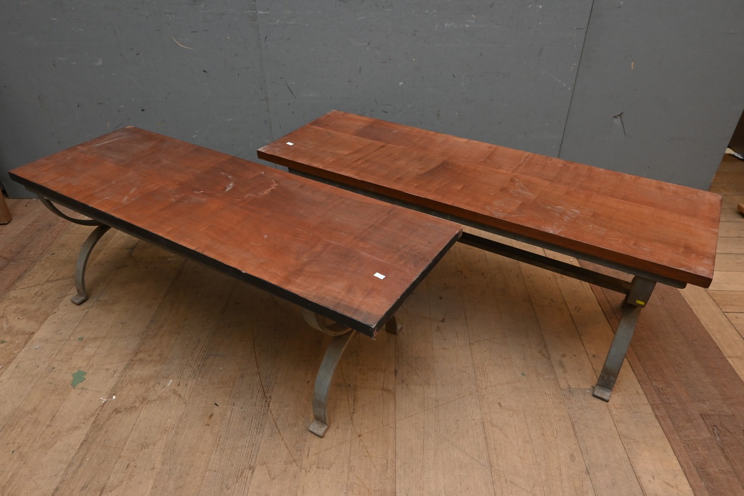 TWO TIMBER AND METAL COFFEE TABLES (A/F) ( TOPS NOT FIXED ) ( 43H XZ 122W X 41D CM) (LEONARD JOEL DELIVERY SIZE: X-LARGE)