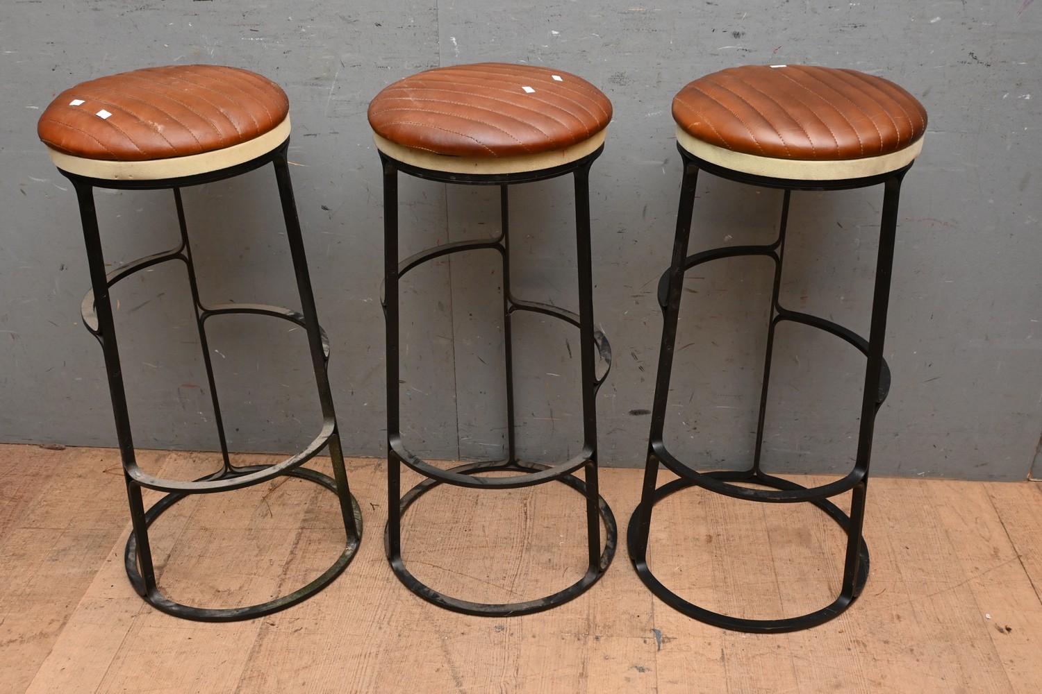 A COLLECTION OF THREE CONTEMPORARY LEATHER BARSTOOLS BY FREDERICIA, DENMARK (A/F) ( 84H X 37 DIAMETER CM) (LEONARD JOEL DELIVERY SIZE:LARGE)