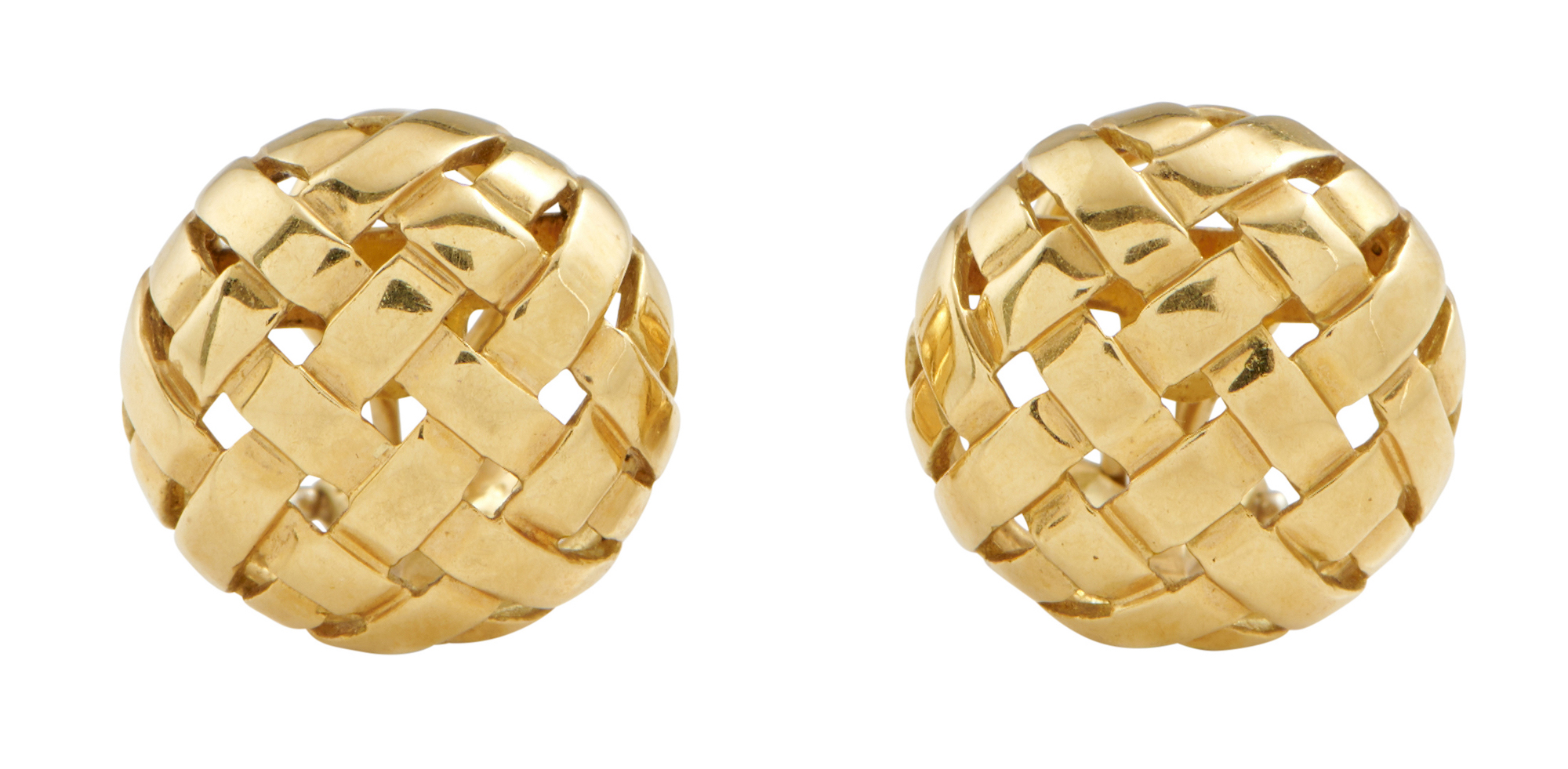 Each earring designed as a circle of woven polished gold, to post and clip fittings, signed Tiffany & Co. 1995, diameter approximately 15mm, accompanied by a Tiffany & Co. box.