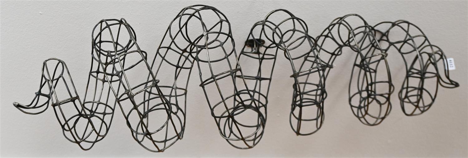 Work in good condition. Sculpture is stable with a welded hanging system.