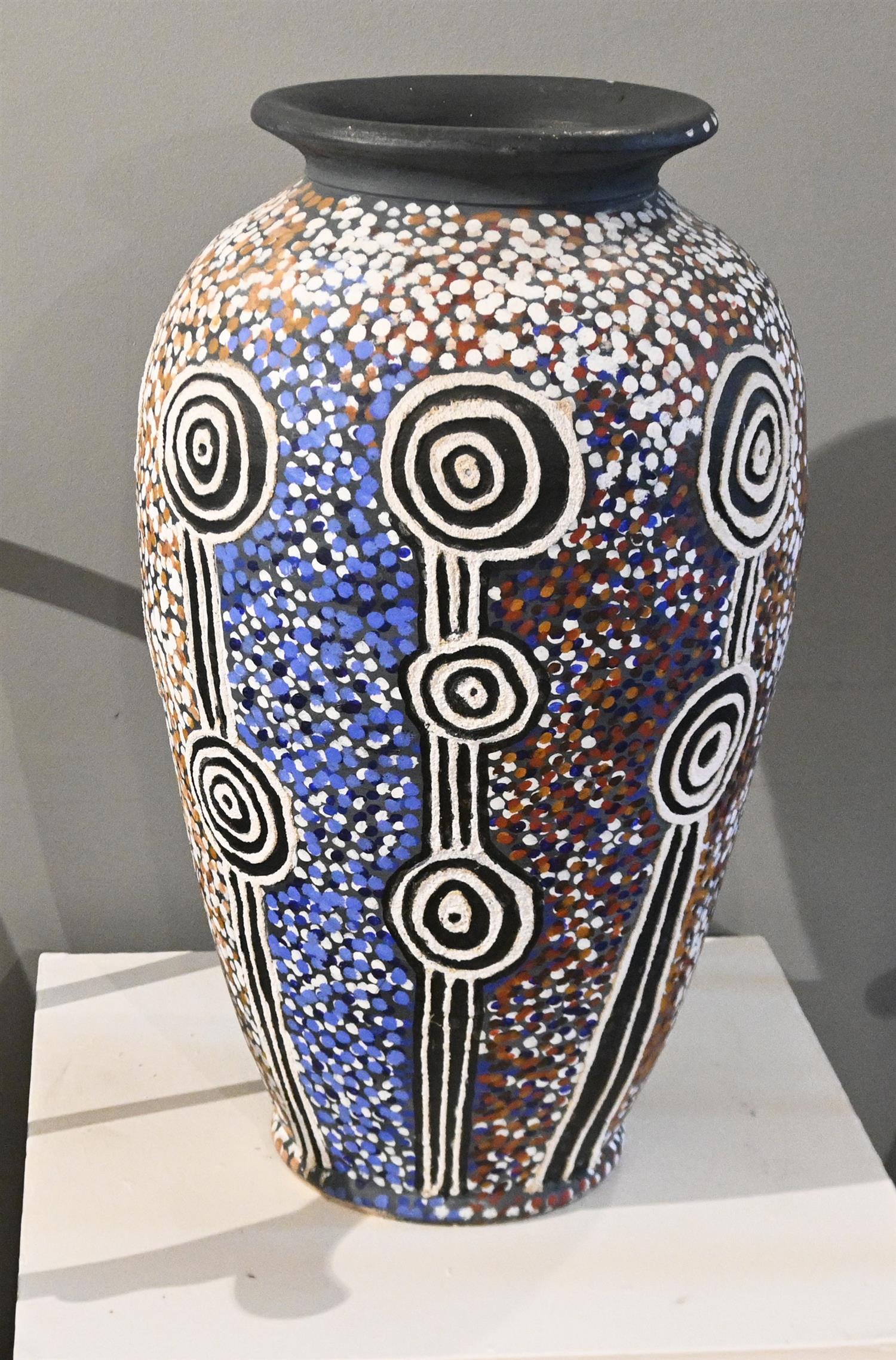 Work in good condition overall. a small insignificant crack is present at the base of the vase. Smudging is present on the one areas of the surface, at the rim of the opening.