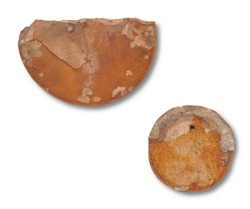 Both end tiles fragmentary, the larger tile end with half missing.