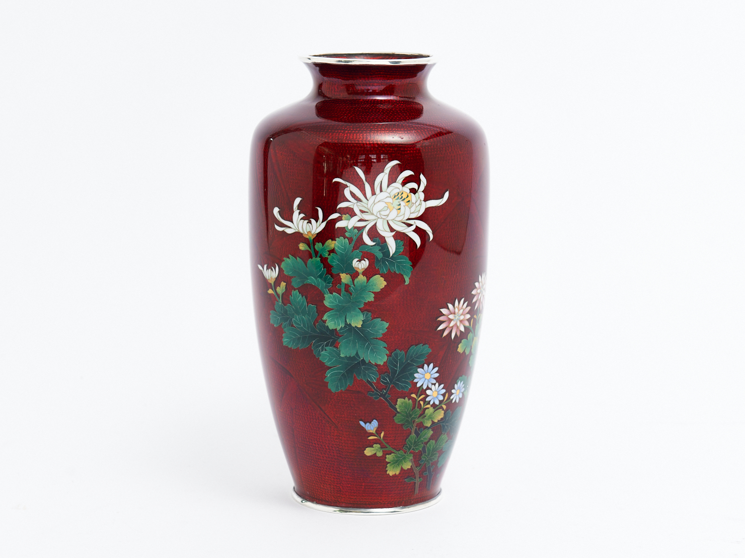 A JAPANESE GINBARI CLOISONNE VASE WITH FLORAL DECORATION H.26CM SATO AND SILVER MARKS TO BASE, LEONARD JOEL LOCAL DELIVERY: SMALL