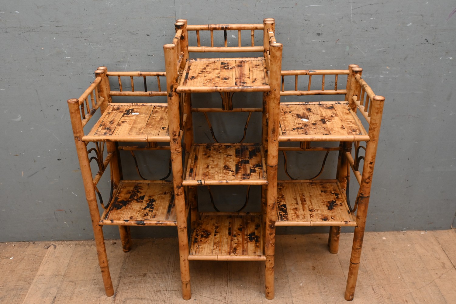 A TORTOISE SHELL BAMBOO THREE SECTION DISPLAY STAND WHATNOT ( 92H X 90W X 32D CM) (LEONARD JOEL DELIVERY SIZE: LARGE)