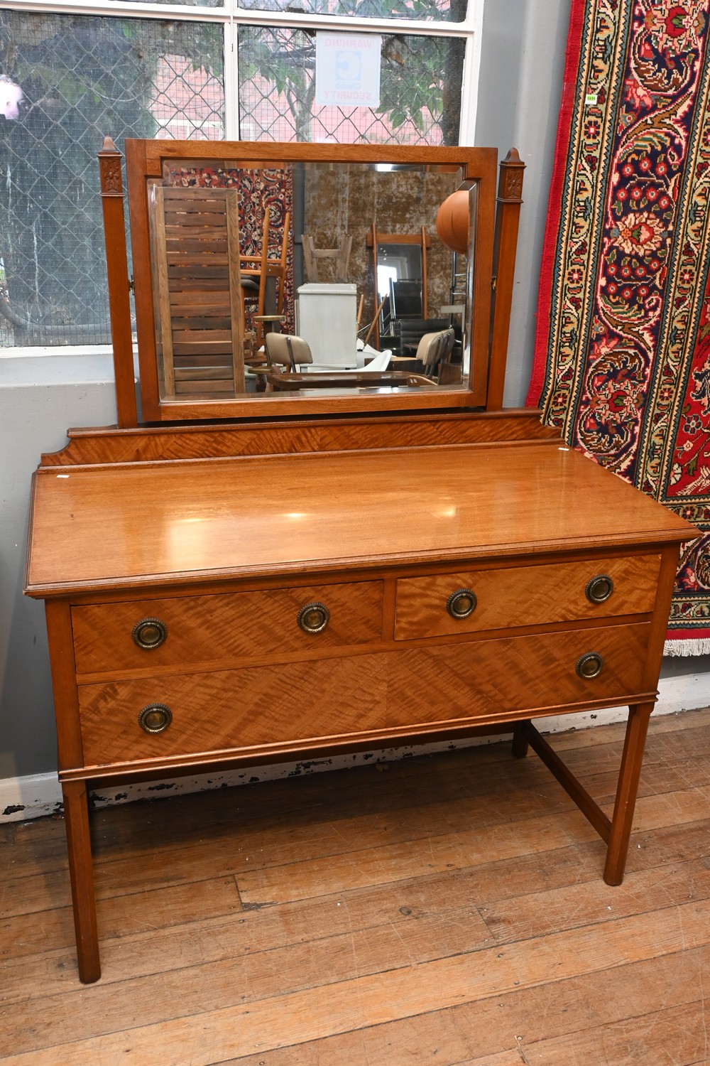 A THREE DRAWER MIRRORBACK DRESSER (150H X 114W X 55D CM) (PLEASE NOTE THIS HEAVY ITEM MUST BE REMOVED BY CLIENTS OR CARRIERS AT THE CUSTOMERS EXPENSE. LEONARD JOEL STAFF CANNOT ASSIST CARRYING THIS ITEM)
