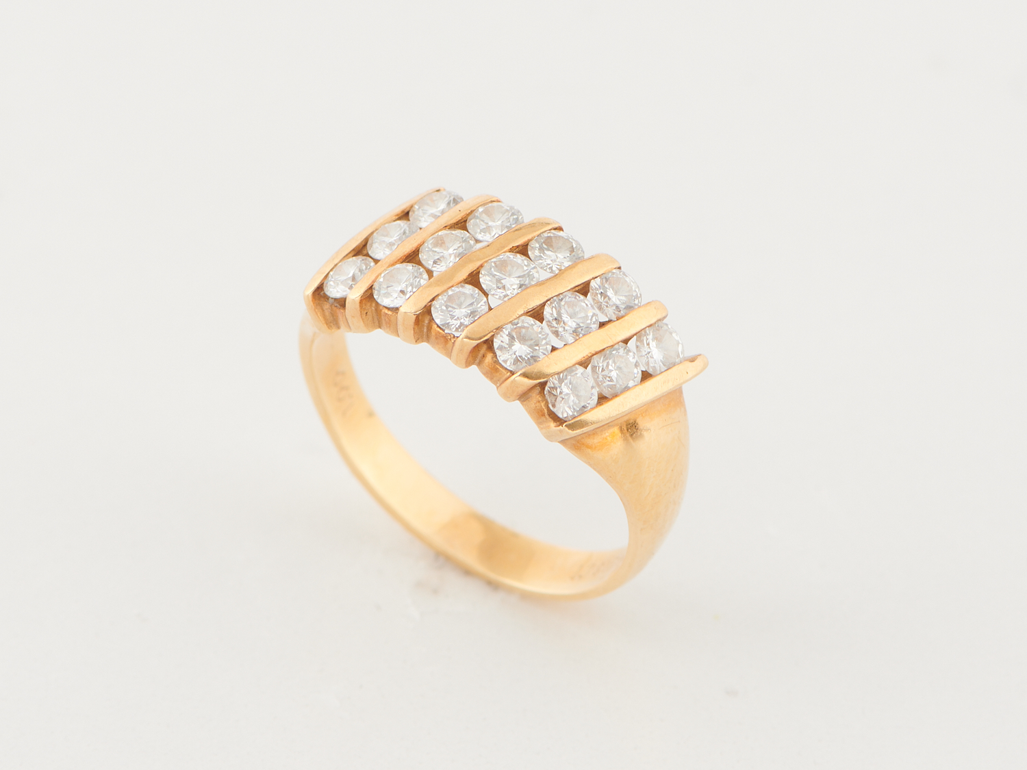 A DIAMOND SET RING IN 18CT GOLD, THE DIAMONDS TOTALLING 1.0CTS, APPROXIMATE RING SIZE N, APPROXIMATE WEIGHT 4.68GMS