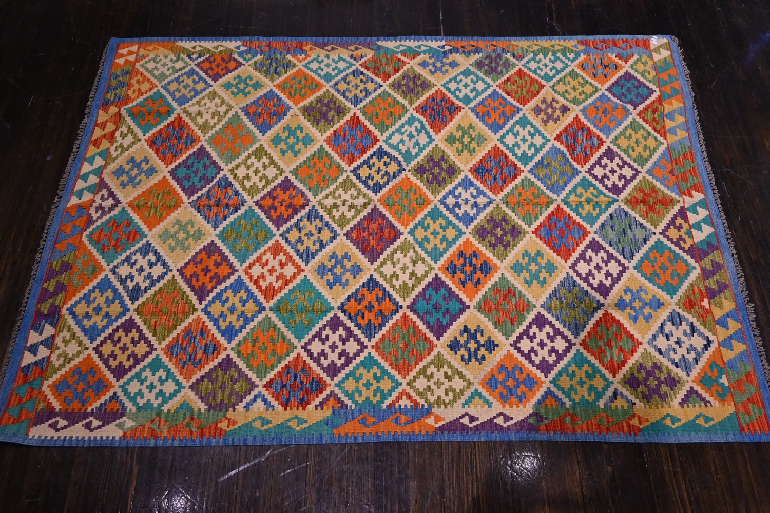 AN AFGHAN CAUCASIAN DESIGN KILIM, HANDWOVEN 100% WOOL, ALL VEGETABLE DYES, REVERSABLE (264 X 184 CM) (LEONARD JOEL DELIVERY SIZE: LARGE)