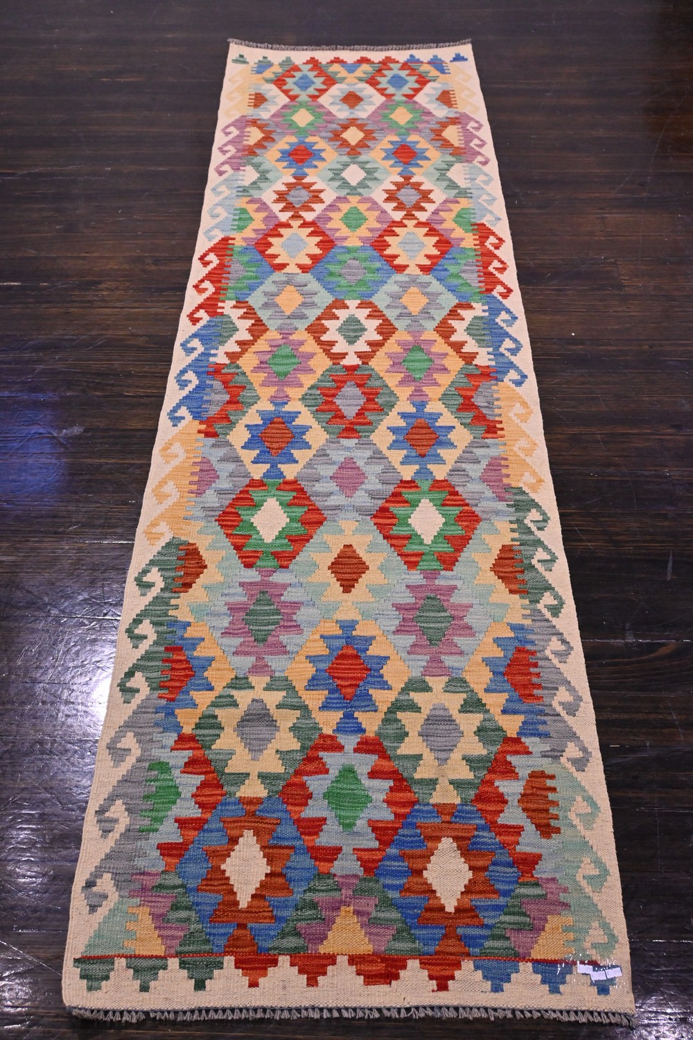 AN AFGHAN CAUCASIAN DESIGN RUNNER, HANDWOVEN 100% WOOL, ALL VEGETABLE DYES, REVERSABLE (302 X 84 CM) (LEONARD JOEL DELIVERY SIZE: LARGE)