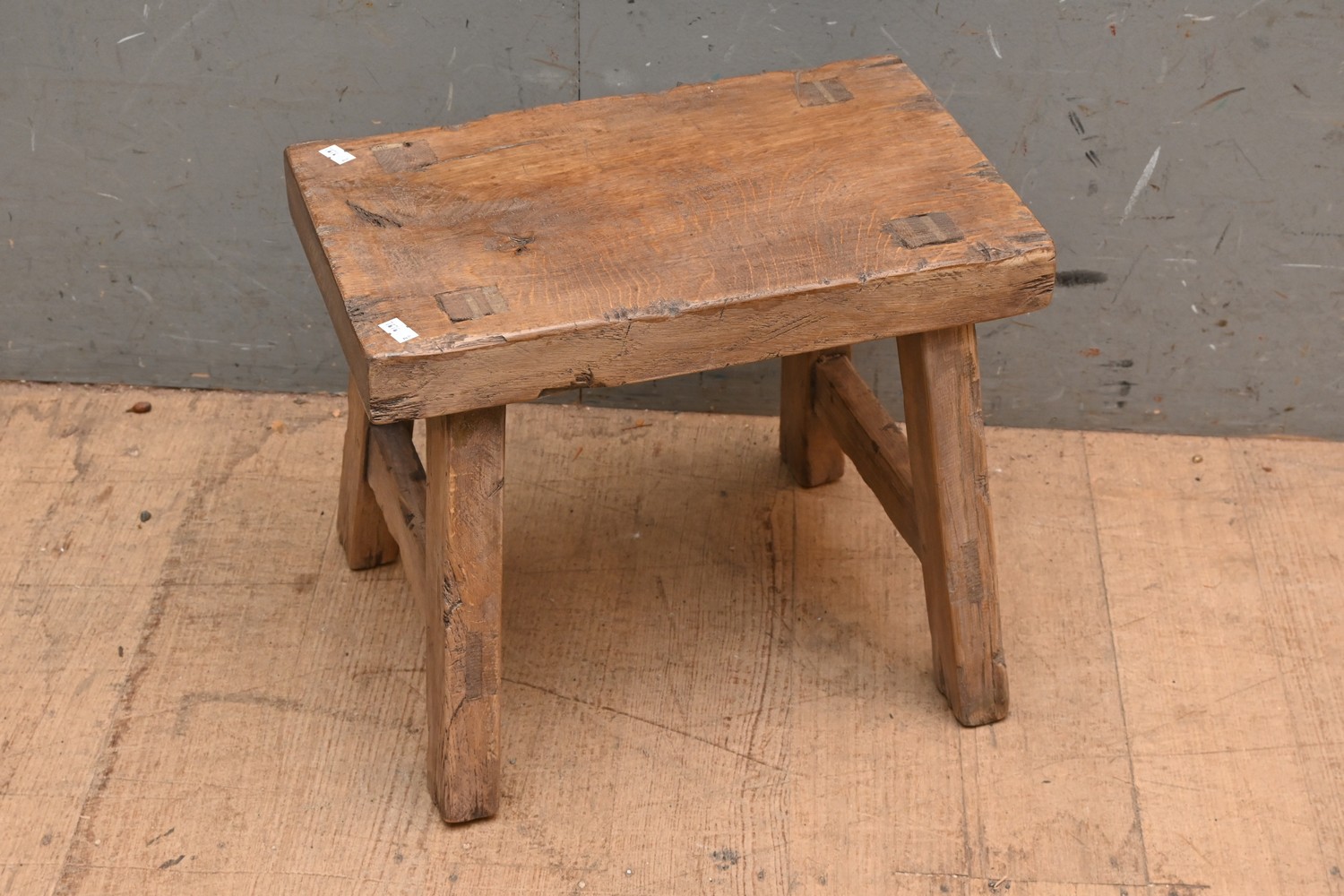 A FRENCH STYLE OAK MILKING STOOL (34H X 40W X 24D CM) (LEONARD JOEL DELIVERY SIZE: MEDIUM)