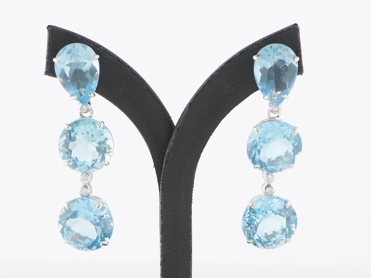 A PAIR OF TOPAZ AND DIAMOND EARRINGS IN 18CT GOLD, TO POST AND BUTTERFLY FITTINGS, THE TOPAZ TOTALLING APPROXIMATELY 51.80CTS, THE DIAMONDS TOTALLING APPROXIMATELY 0.12CTS, SIZE 13 X 50MM, WEIGHT 17.1GMS