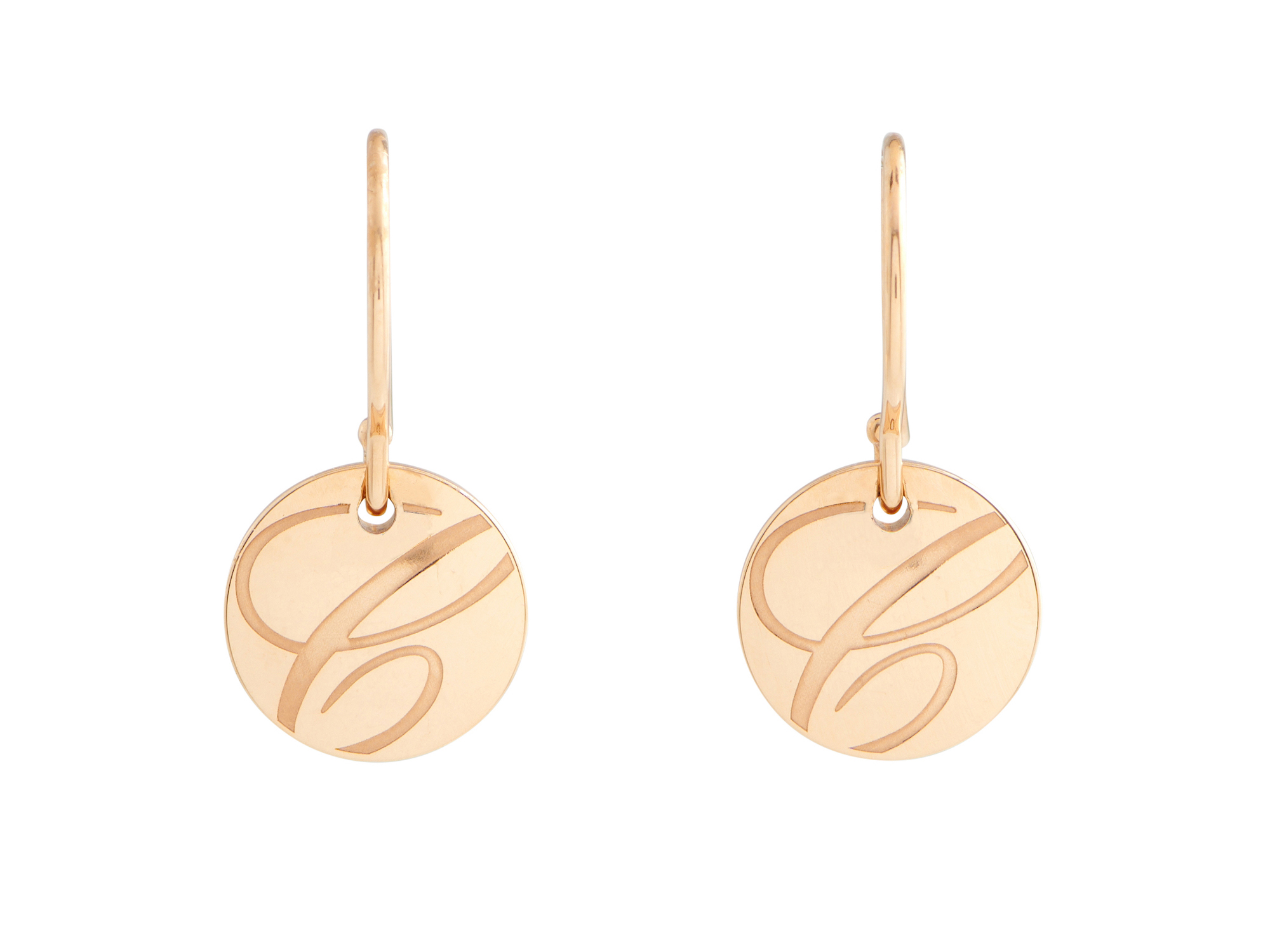 Each earring comprising a circular disc with engraved 'C' motif, to shepherd hook fittings, signed Chopard and numbered 6289274, length approximately 24mm.
