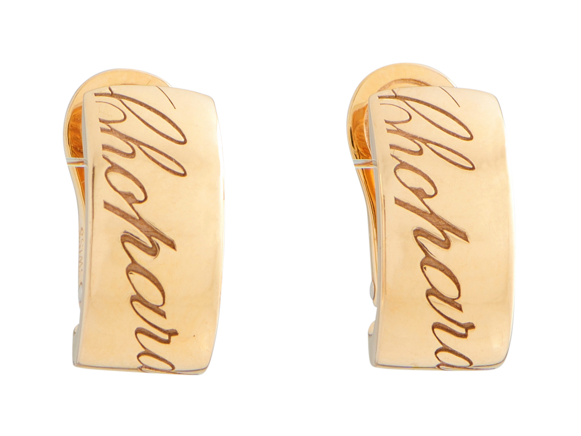 Of huggie design, each earring engraved 'Chopard' to the centre, to post and clip fittings, signed Chopard and numbered 837031-5001, 6151568 length approximately 12mm.