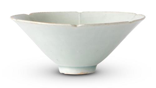 A CHINESE QINGBAI CONICAL FOLIATE-RIM BOWL