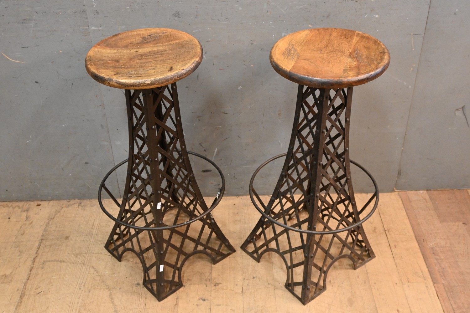 A PAIR OF EIFFEL TOWER FORM BARSTOOLS (H80 X D42 CM) (LEONARD JOEL DELIVERY SIZE: LARGE)