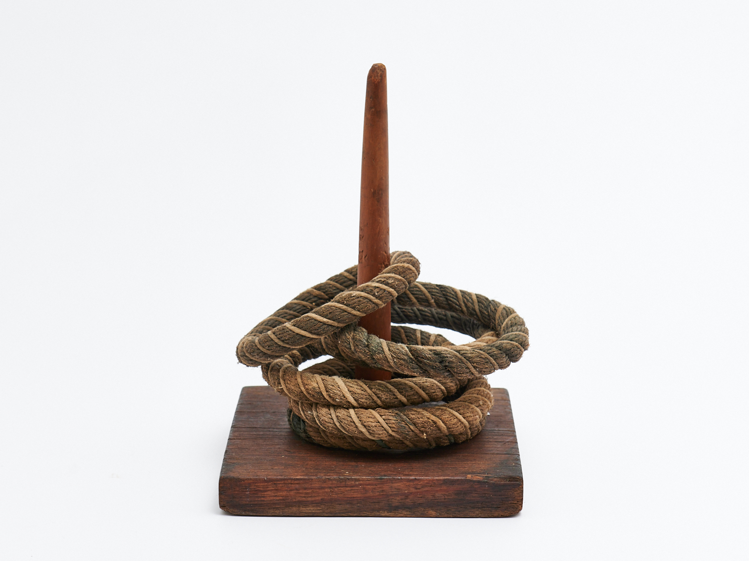 AN OAK BASED ROPE QUOITS SET, H.35CM, LEONARD JOEL LOCAL DELIVERY: SMALL