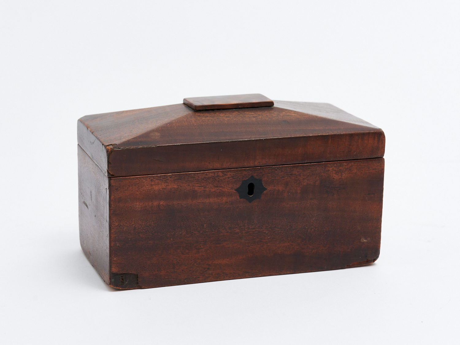 A GEORGIAN MAHOGANY SARCOPHAGUS TEA CADDY (A/F), H.12CM X W.20CM X D.10.5CM, LEONARD JOEL LOCAL DELIVERY: SMALL