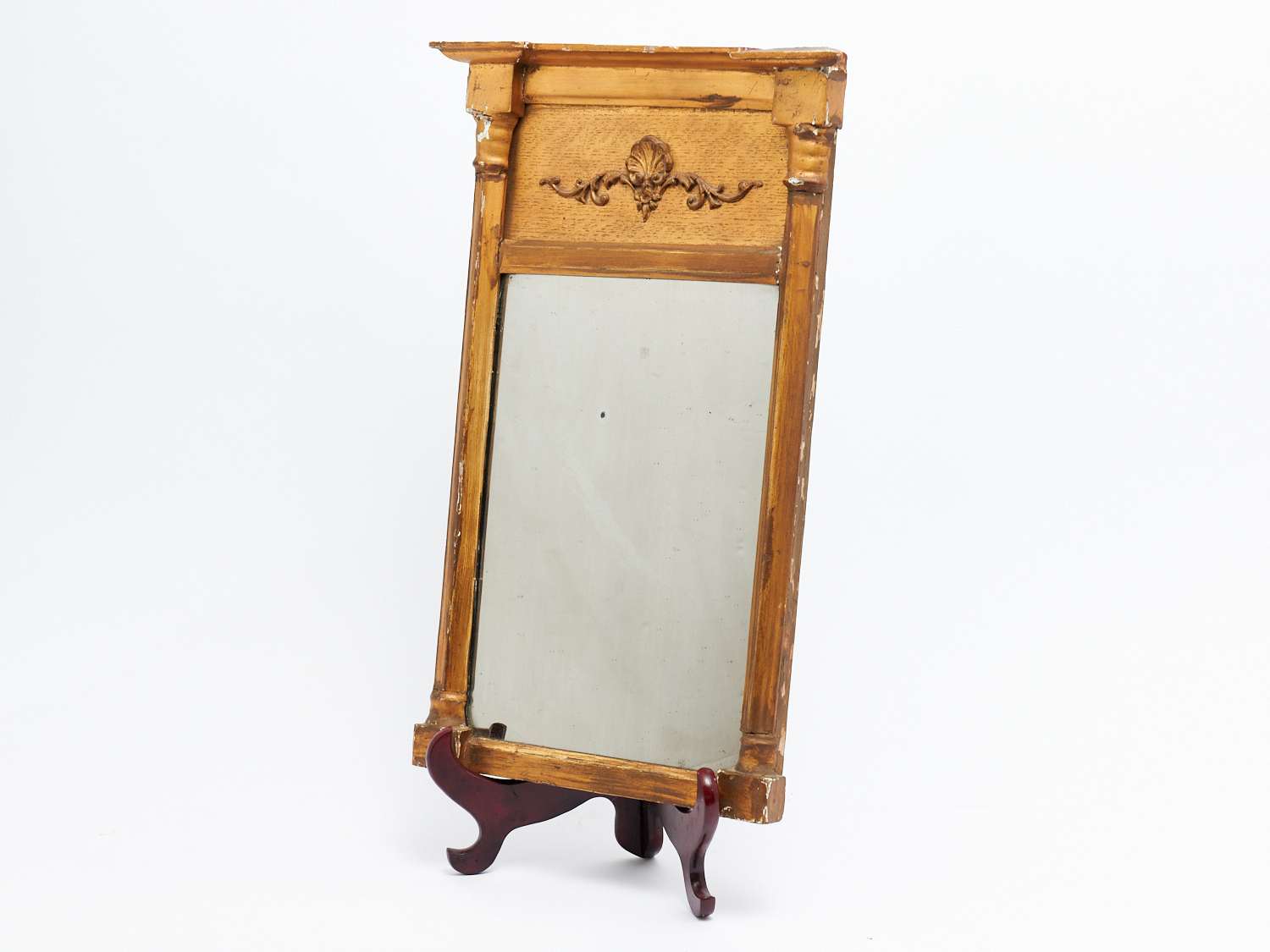 A GILT WOOD MIRROR (A/F) H.53CM X W.30CM, LEONARD JOEL LOCAL DELIVERY: MEDIUM