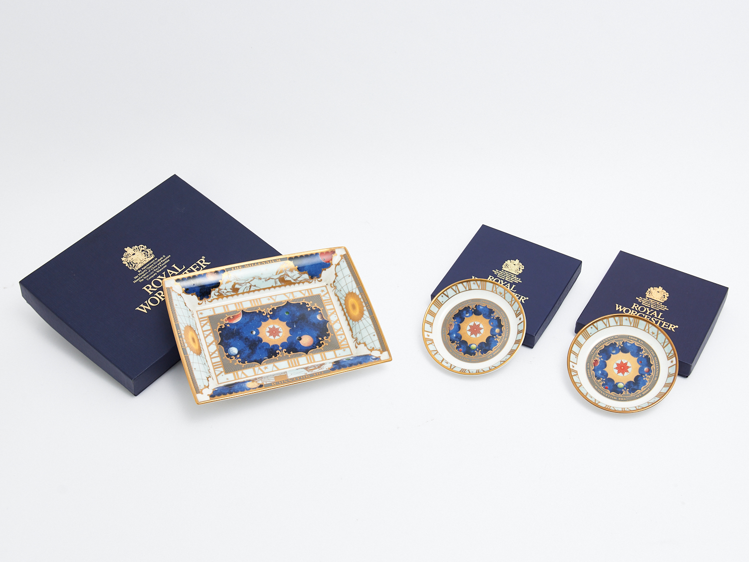 THREE ROYAL WORCESTER MILLENIUM PLATES L.22CM (LARGEST), LEONARD JOEL LOCAL DELIVERY: MEDIUM
