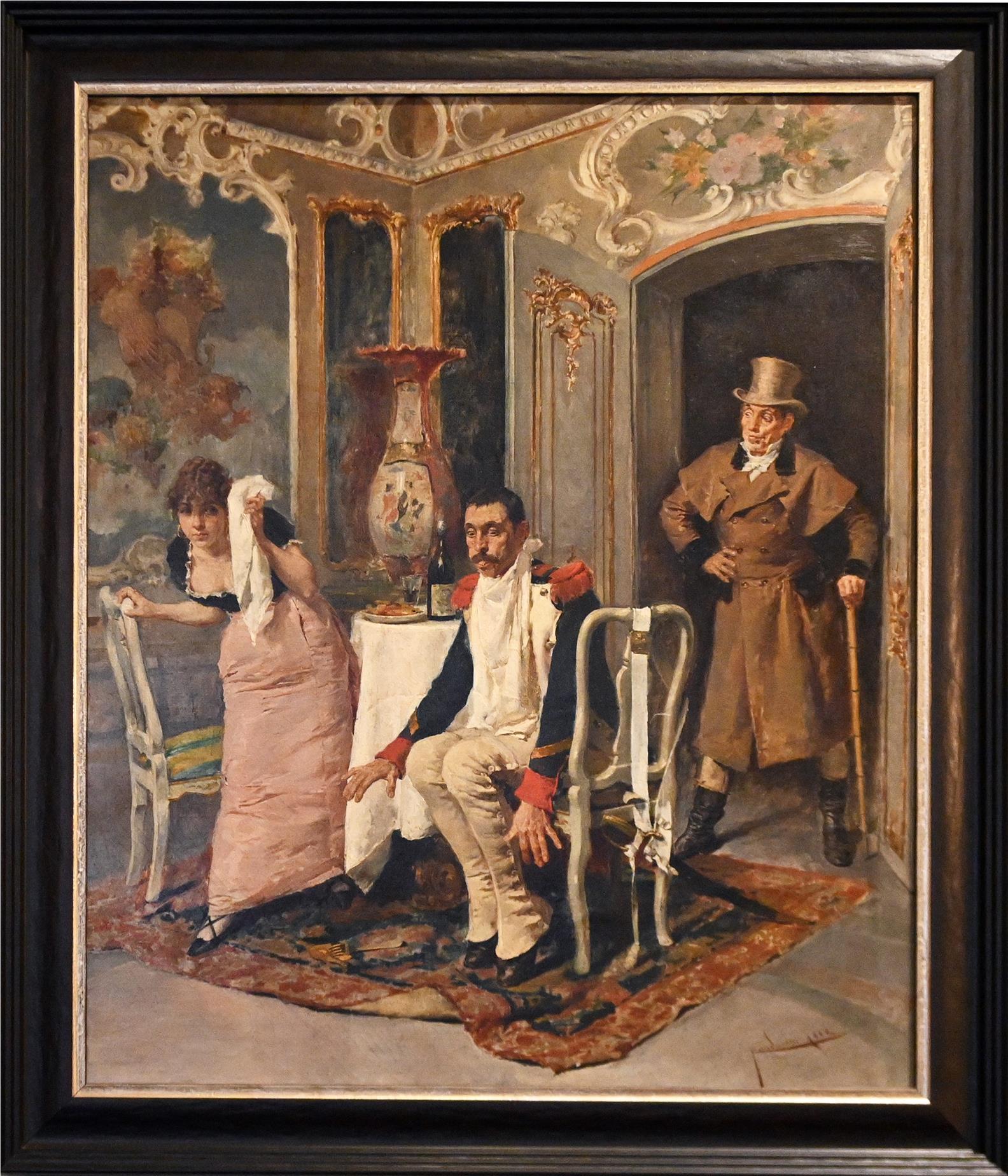 CARLO RANDININI, (THE RENDEZVOUS) 1882, OIL ON CANVAS ON BOARD, SIGNED AND DATED LOWER RIGHT: RANDININI 1882, 68.5 X 57CM, FRAMED: 81 X 69.5CM