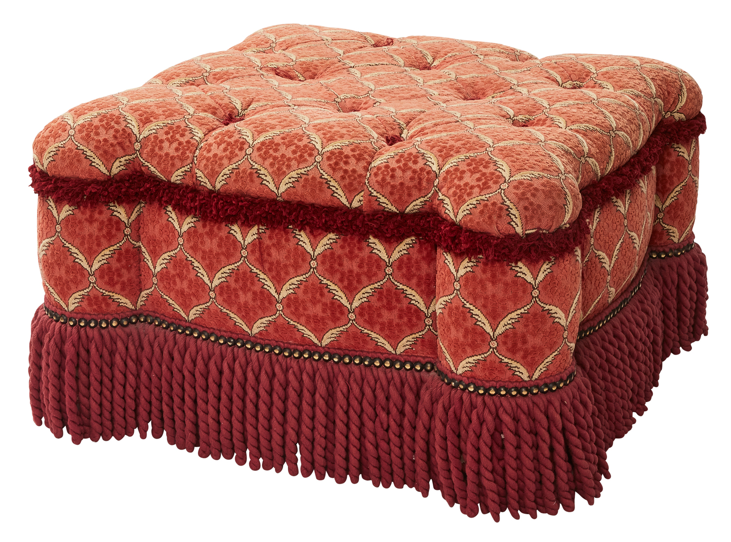 Overall in good condition with no stains or significant wear, the tufted fringing and buttons are slightly unravelled, fringing a little faded