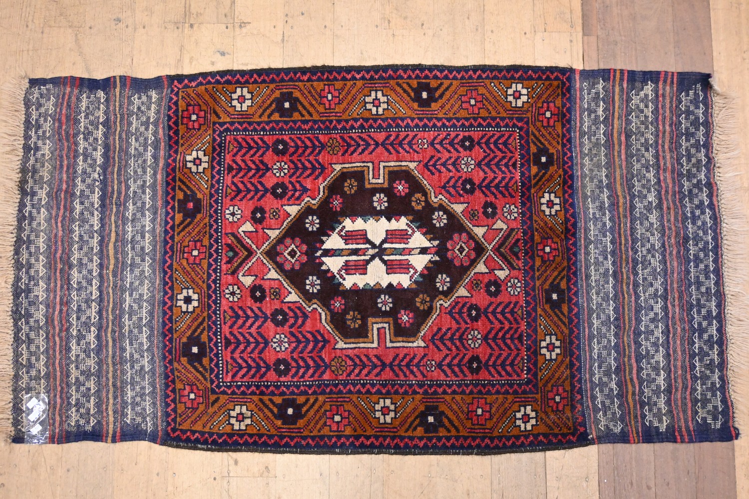A VINTAGE FINELY WOVEN 100% WOOL PERSIAN RUG WITH CENTRAL MEDALLION DESIGN (A/F) ( 155 X 80CM) (LEONARD JOEL DELIVERY SIZE: MEDIUM)