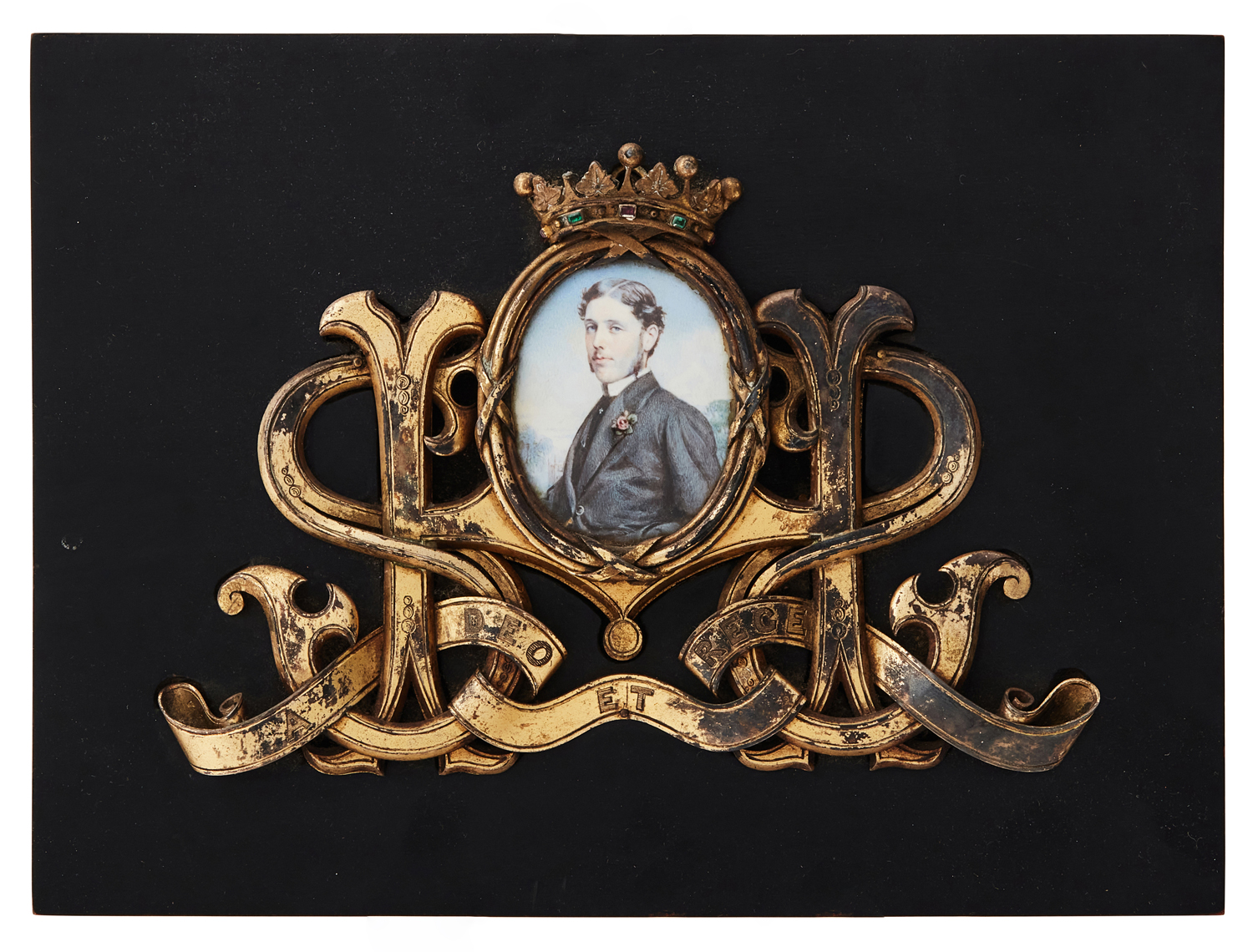 coronet, and the motto A DEO ET REGE, on ebonised panel.