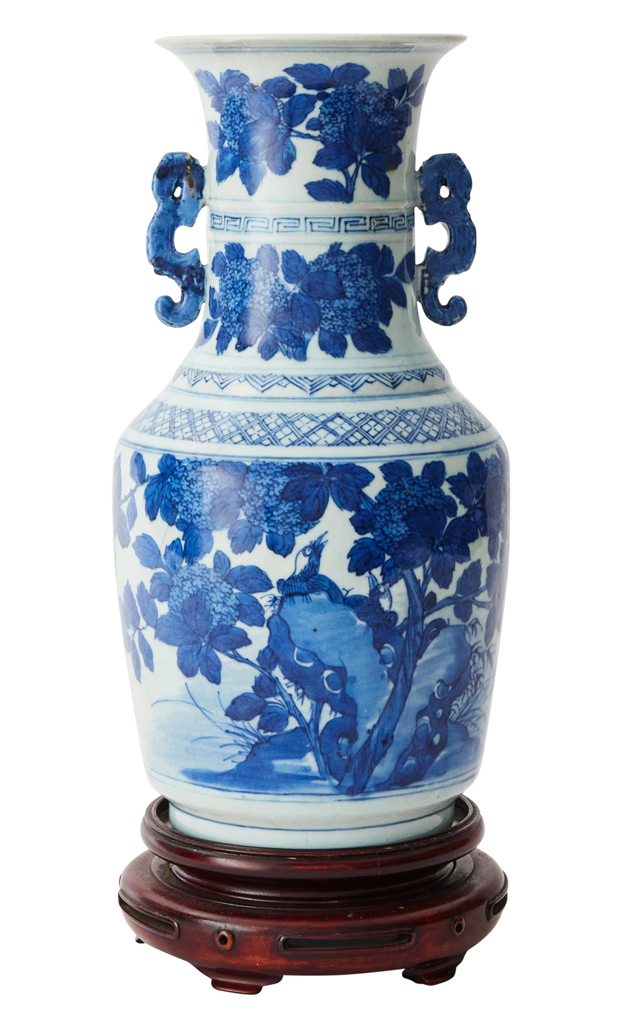 A CHINESE BLUE AND WHITE BALUSTER VASE