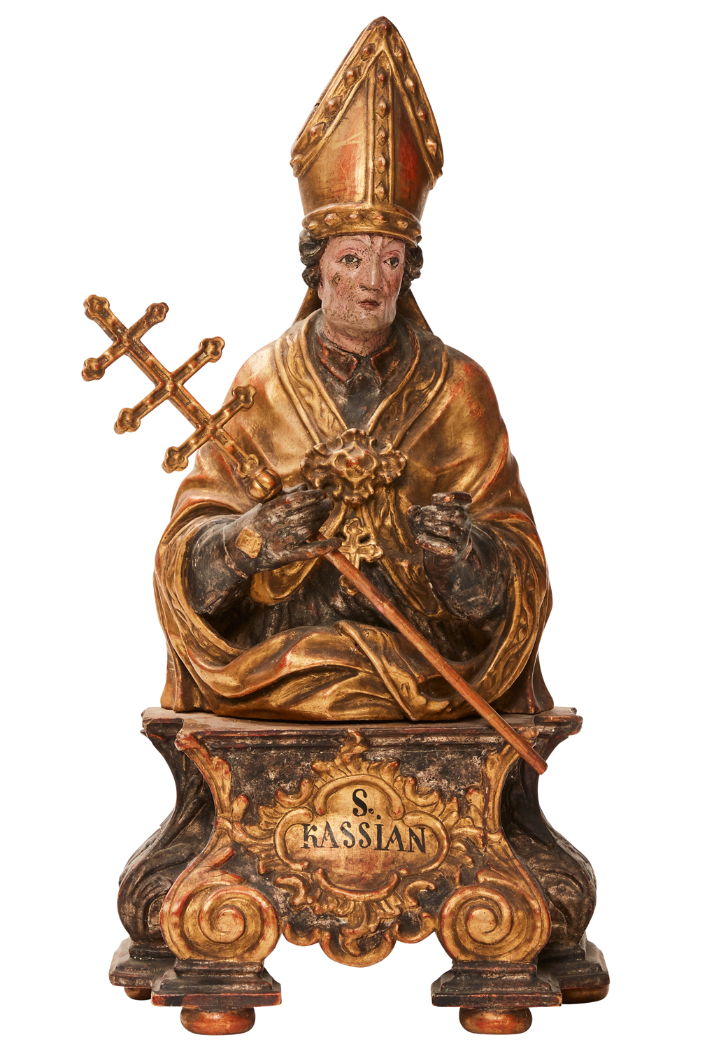 A SOUTH GERMAN POLYCHROME RELIQUARY FIGURE OF SAINT KASSIAN