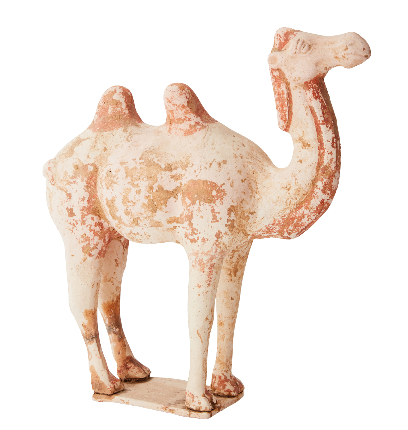 A CHINESE PAINTED TERRACOTTA FIGURE OF A BACTRIAN CAMEL