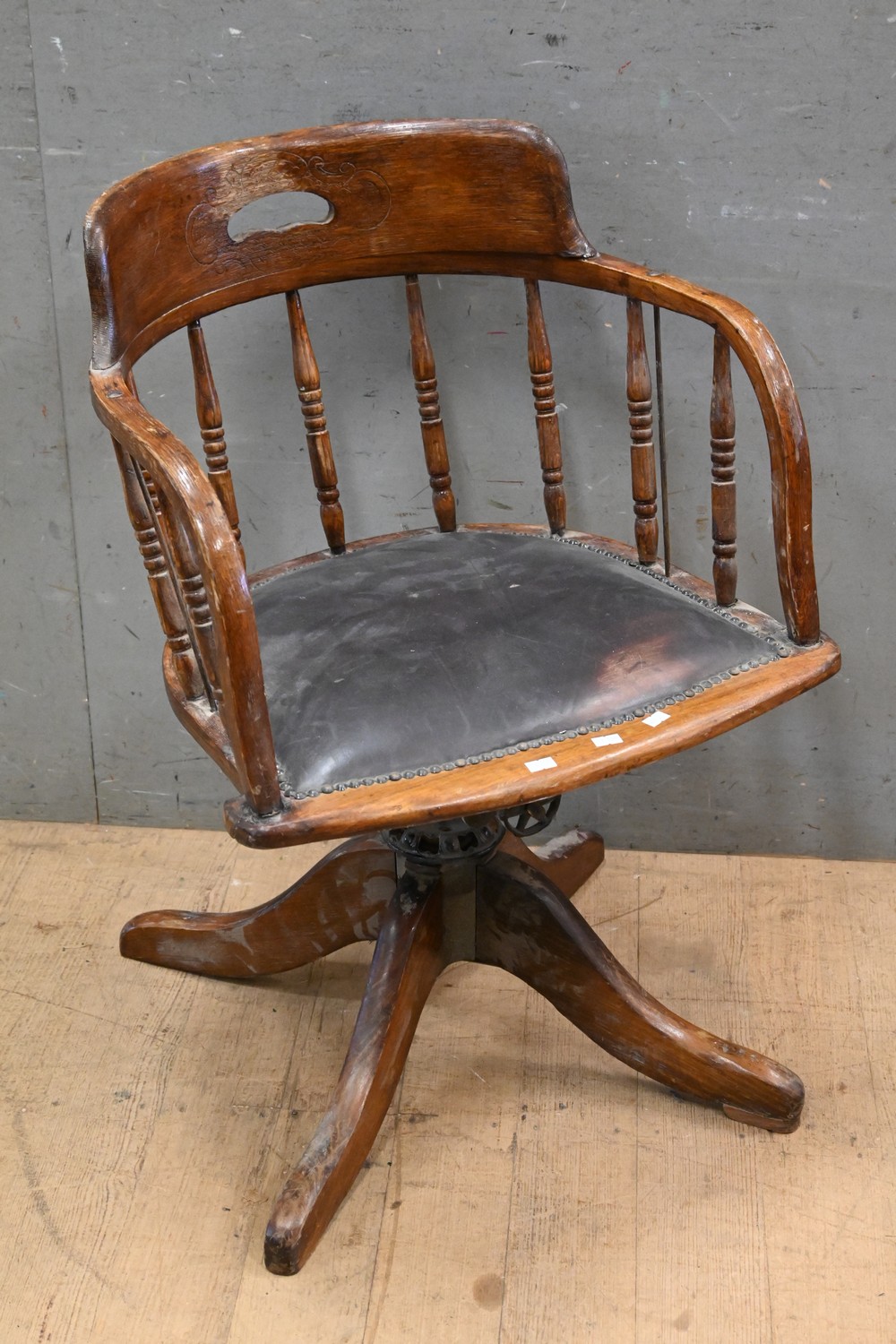A CAPTAINS CHAIR ON SWIVEL BASE (A/F) (80H X 53W X 53D CM) (LEONARD JOEL DELIVERY SIZE: MEDIUM)