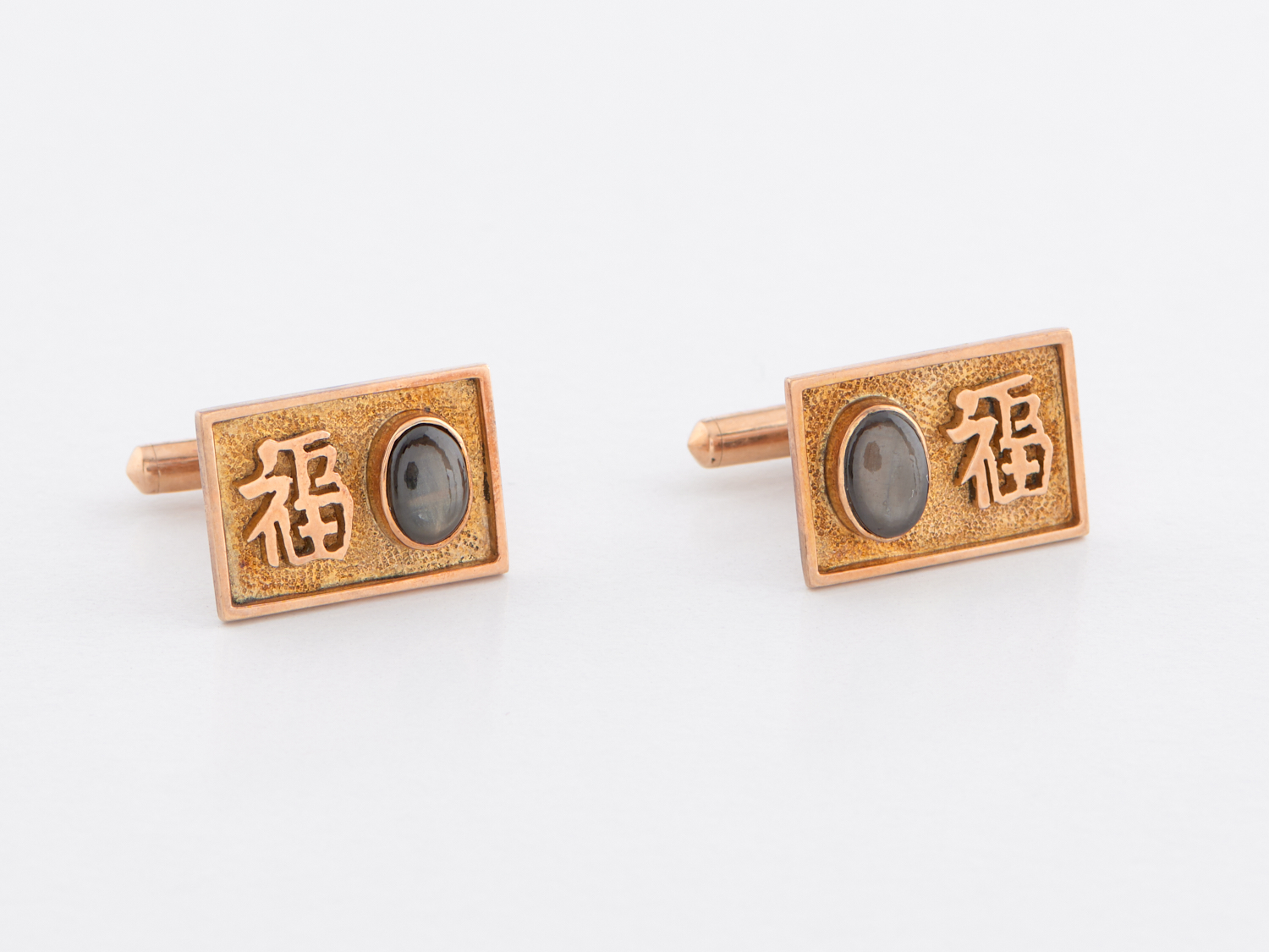 A PAIR OF SAPPHIRE SET CUFFLINKS IN 14CT GOLD, APPROXIMATE SIZE 13 X 20MM, APPROXIMATE WEIGHT 10.5GMS
