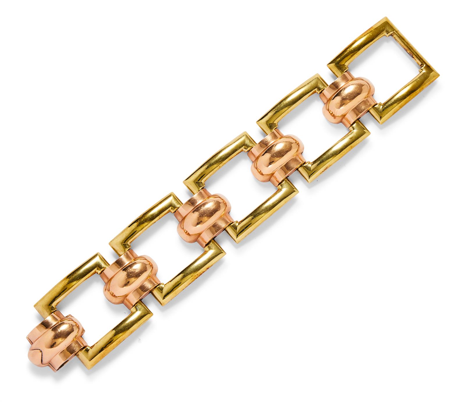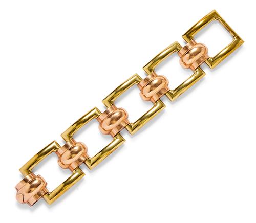 14CT BICOLOUR GOLD BRACELET, CIRCA 1940