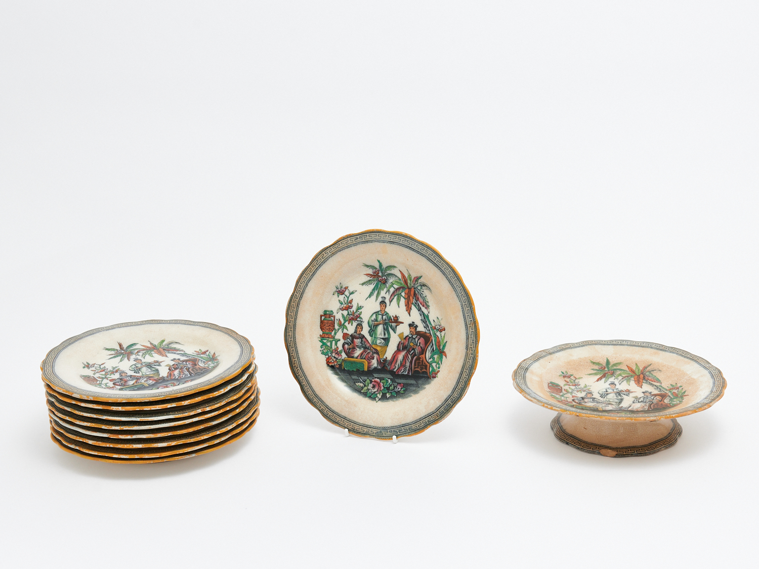 A COLLECTION OF MANDARINE PATTERN PLATES (A/F) DIA.22CM, LEONARD JOEL LOCAL DELIVERY: MEDIUM