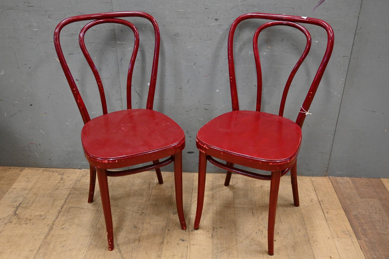 A PAIR OF RED PAINTED BENTWOOD CHAIRS (A/F) (90H X 40W X 53D CM) (LEONARD JOEL DELIVERY SIZE: LARGE)