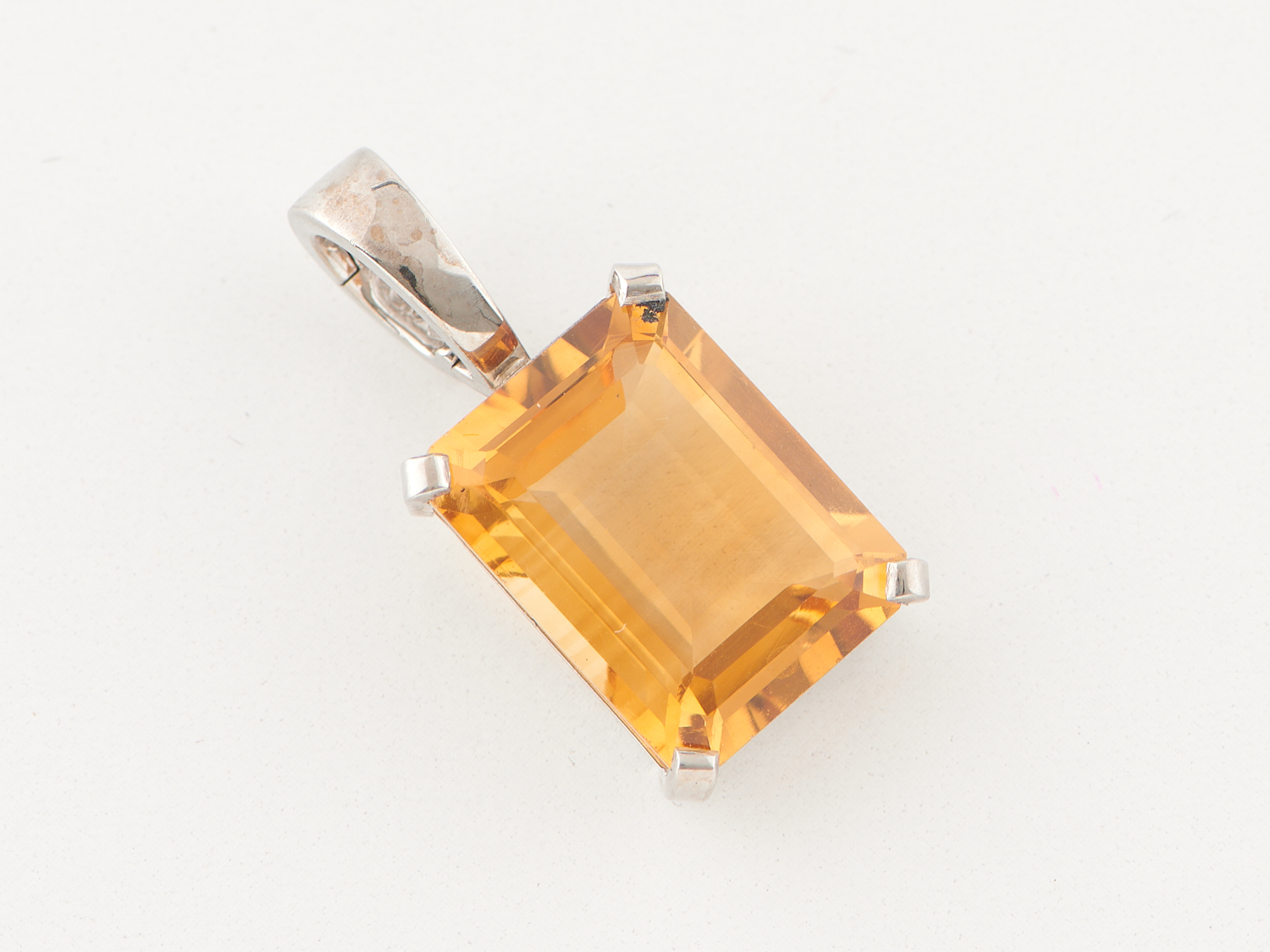 A CITRINE SET PENDANT IN 9CT WHITE GOLD, APPROXIMATE SIZE 12 X 26MM, APPROXIMATE WEIGHT 5.03GMS