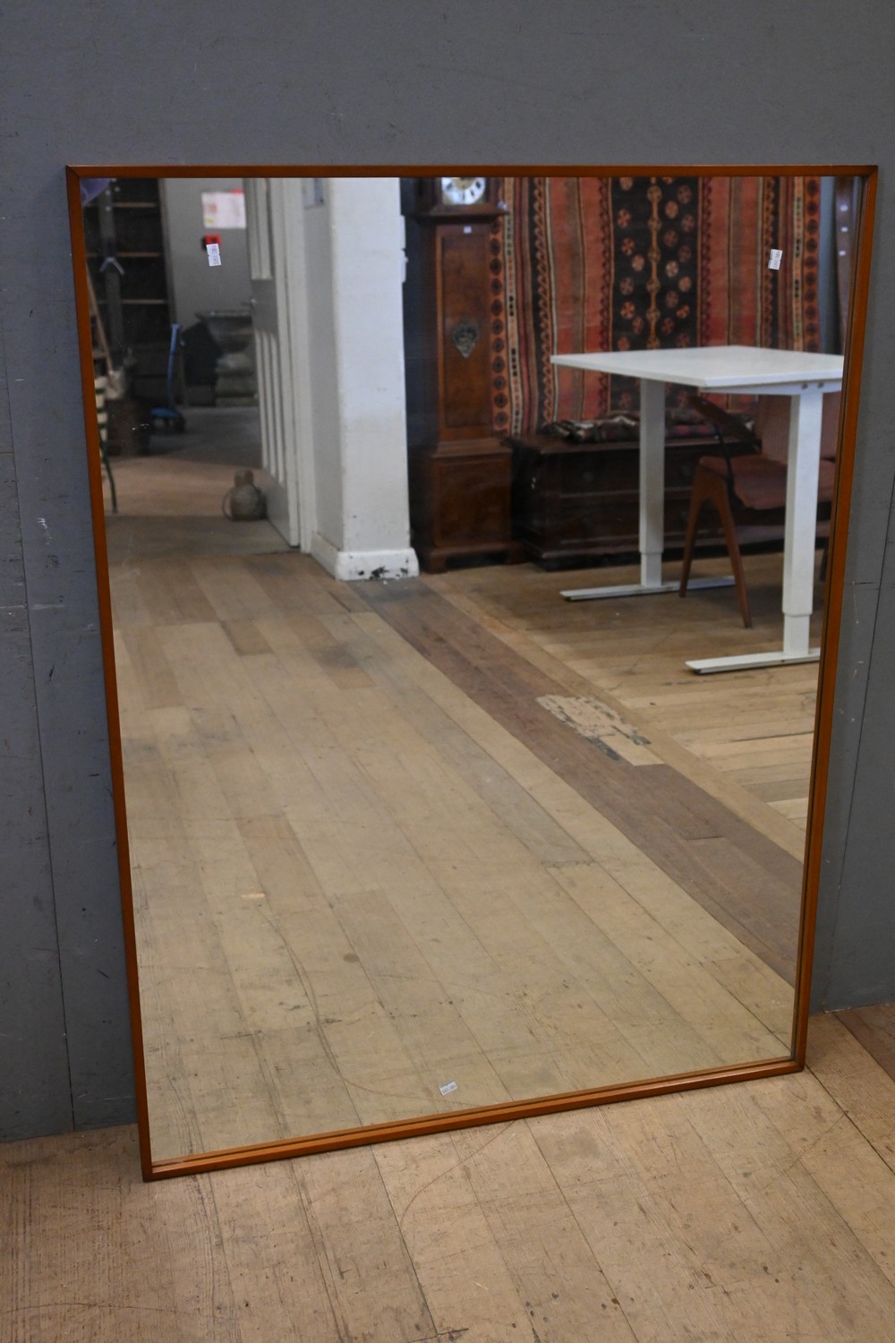 A LARGE MID CENTURY TEAK FRAME MIRROR (KALMAR) (122H X 93W CM) (LEONARD JOEL DELIVERY SIZE: LARGE)
