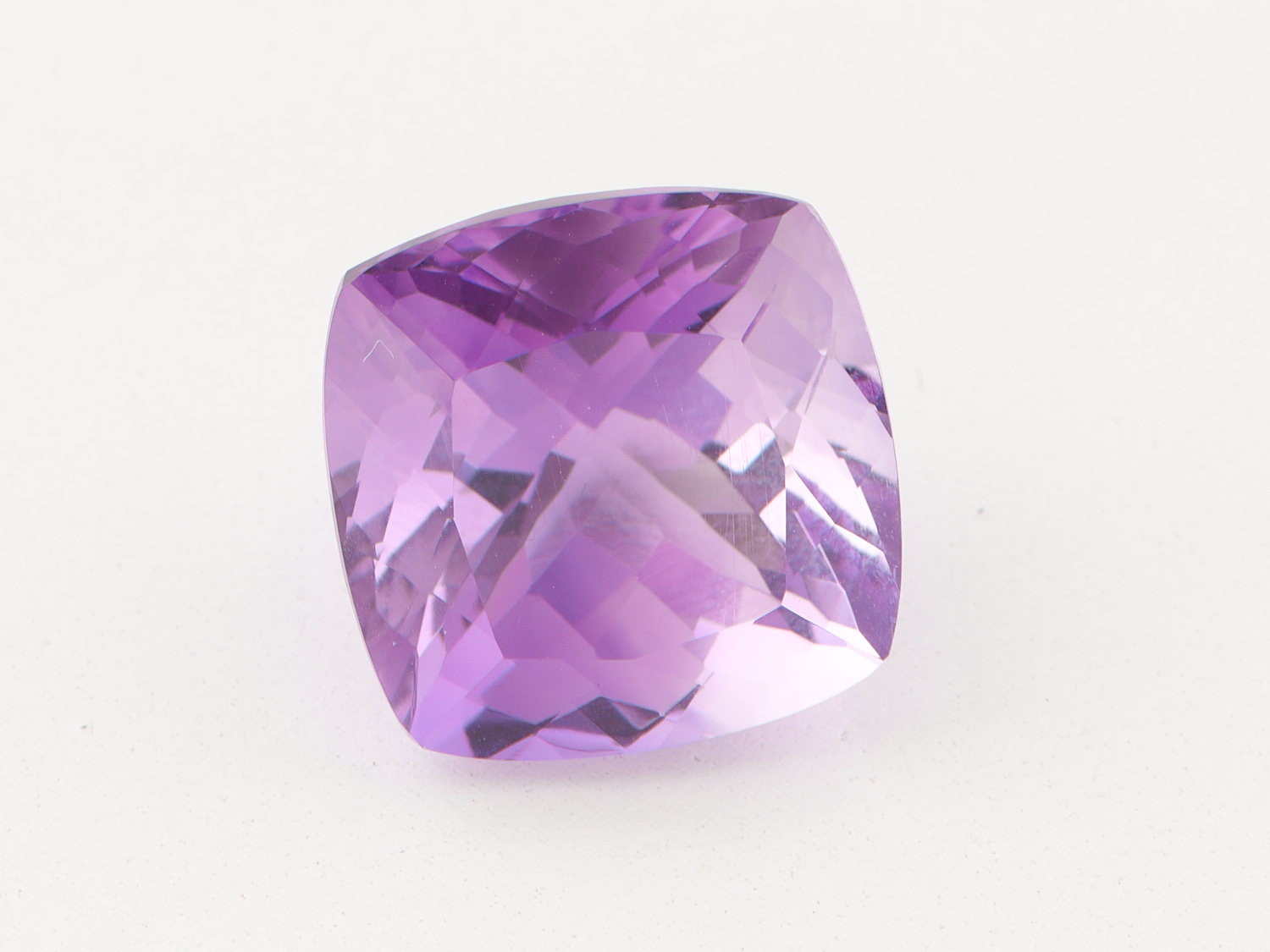 A LOOSE CUSHION CUT AMETHYST WEIGHING 14.02CTS, 15 X 15MM