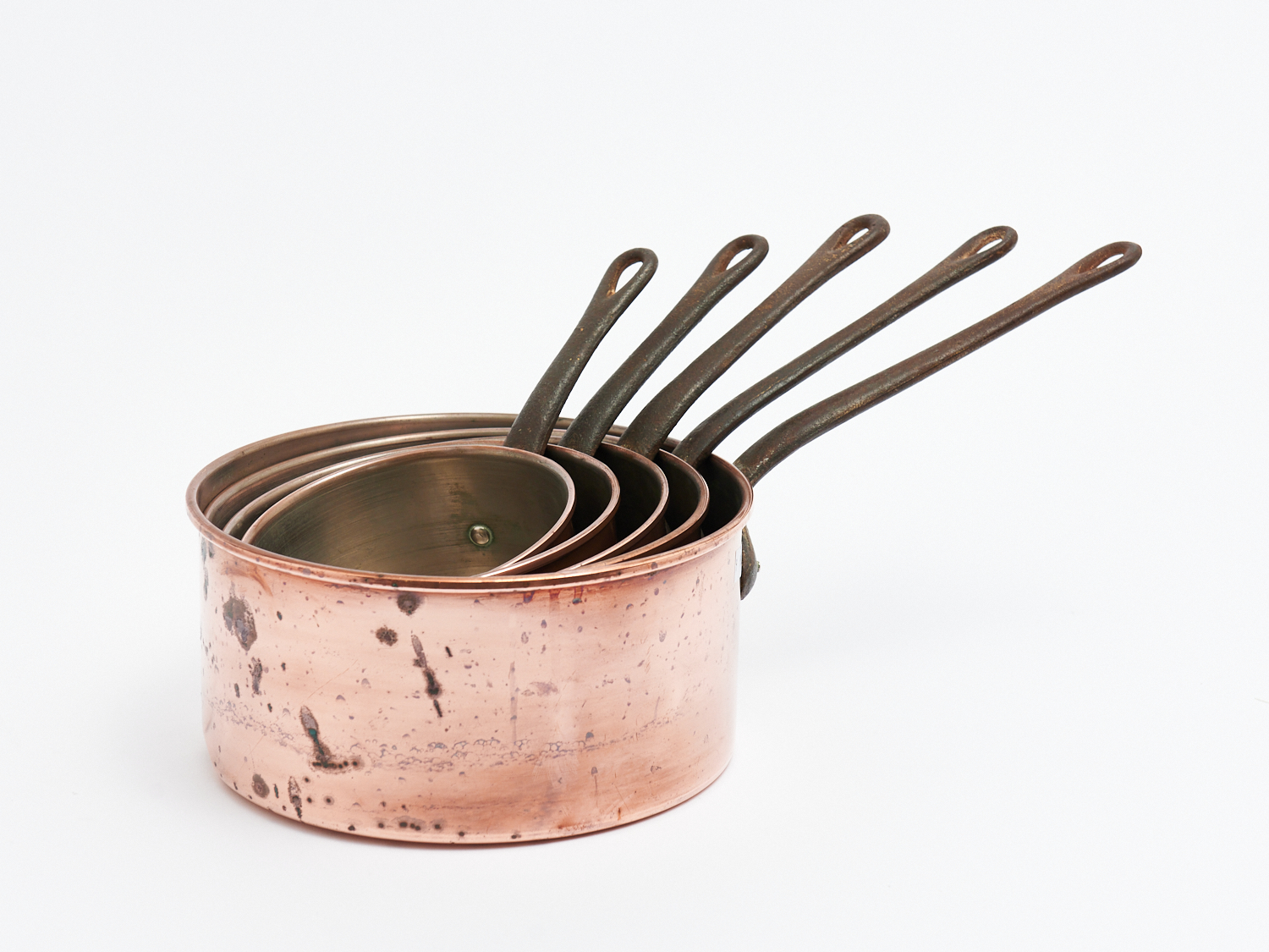 A SET OF FIVE FRENCH COPPER SAUCEPANS DIA.21CM (LARGEST), LEONARD JOEL LOCAL DELIVERY: MEDIUM