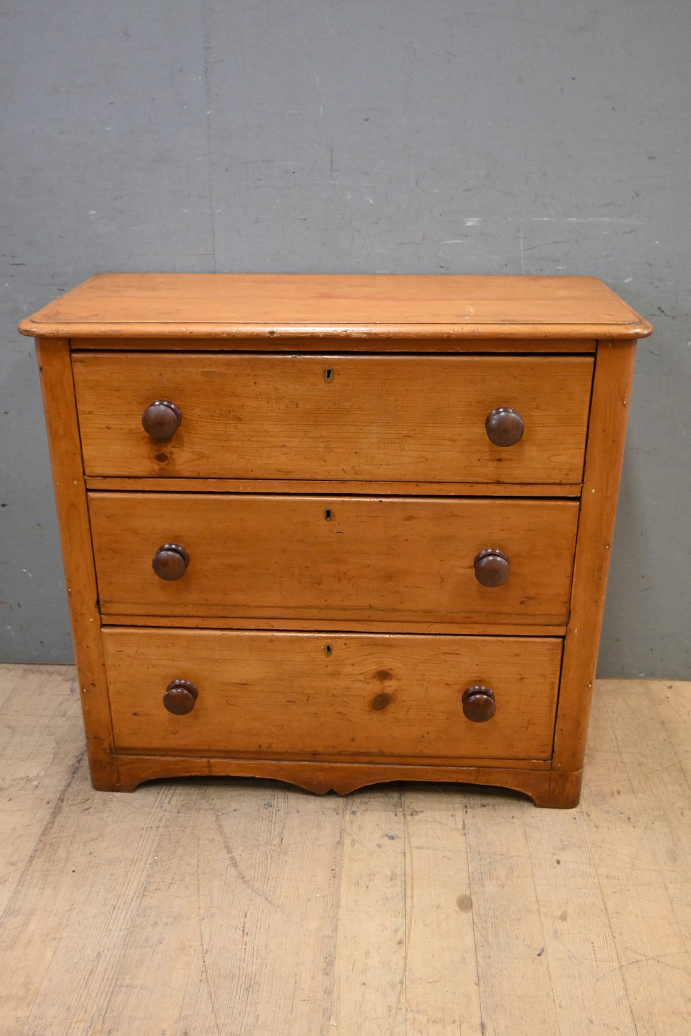 AN ANTIQUE THREE DRAWER CHEST (A/F) (89H X 98W X 45D CM) (LEONARD JOEL DELIVERY SIZE: LARGE)