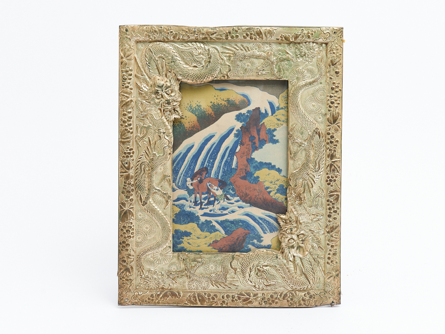 A JAPANESE PRINT (AFTER HOKUSAI) IN EMBOSSED WHITE METAL FRAME H.33CM X W.26CM, LEONARD JOEL LOCAL DELIVERY: SMALL