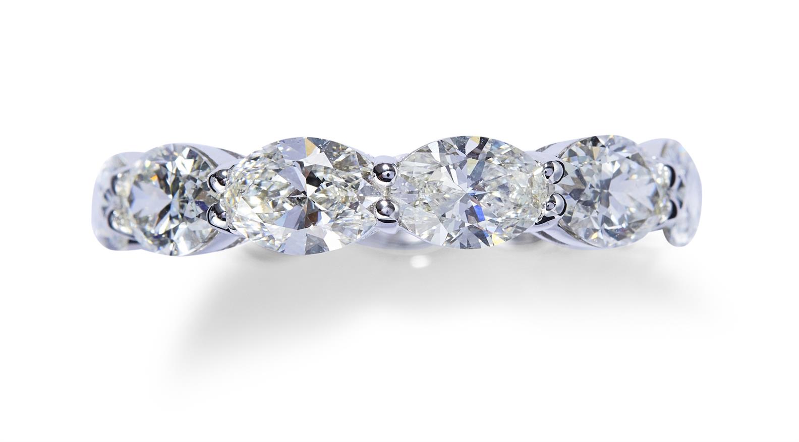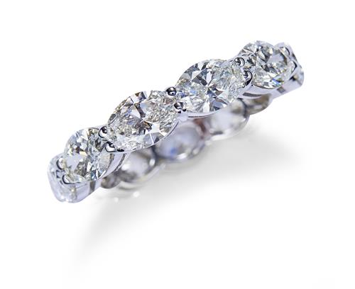 Designed as a continuous row of 11 claw-set oval brilliant-cut diamonds together weighing 5.67 carats, mounted in 18ct white gold, size M1/2.